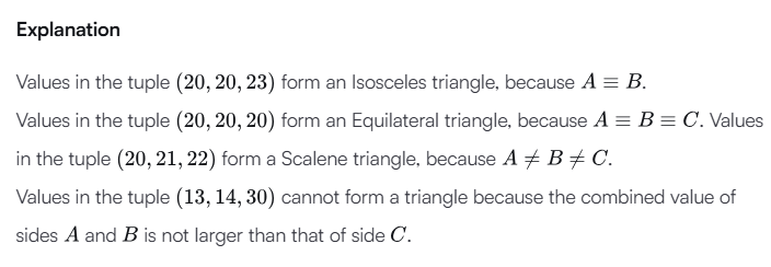 - Not A Triangle: The given values of A, B, and C don't form a triangle.