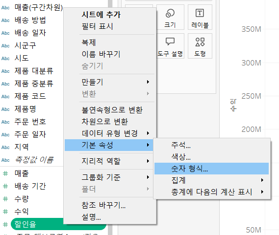1. 할인율 (x축) 필드를 비율로 바꾸기
